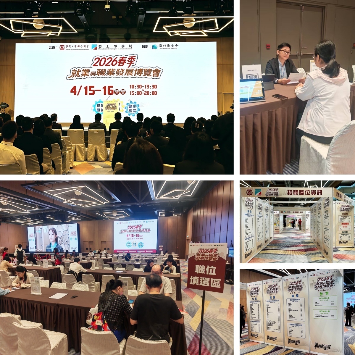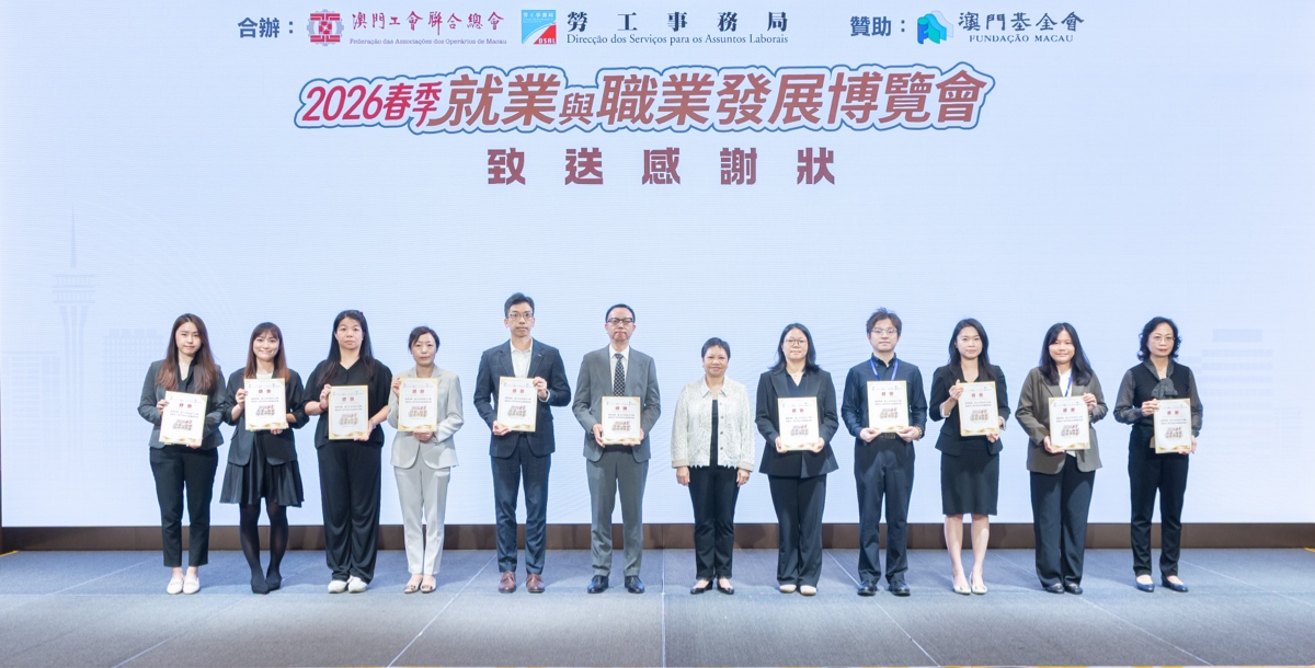 2026年4月15至16日,由澳門工會聯合總會與澳門勞工事務局聯合主辦的「2026春季就業與職業發展博覽會」於澳門旅遊塔會展娛樂中心隆重舉行。是次博覽會匯聚超過50間本地企業參與,提供逾2,000個職位空缺,大學人力資源處在現場設置招聘展位。